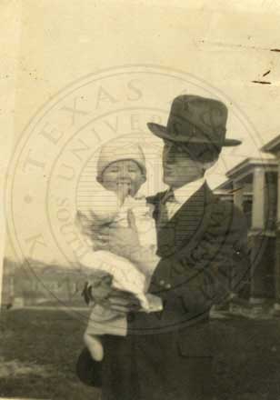 Caption on back, (This is Judge and Cap. Winters in front of our apart. Dandy of both my "boys" don't you think? |