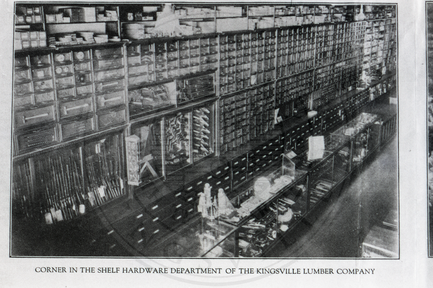 Corner in the shelf hardware department of the Kingsville Lumber Company.