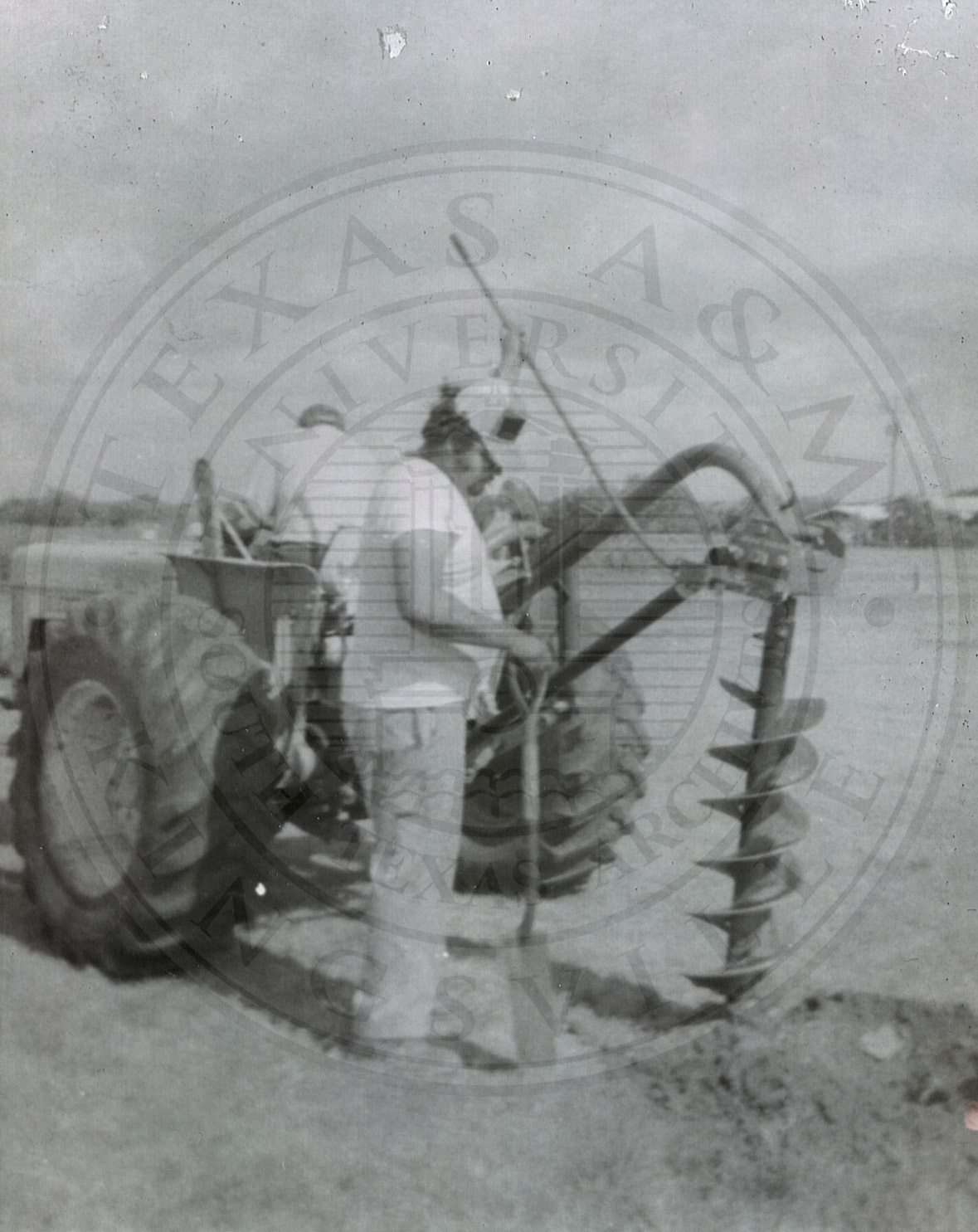 Parque Hermanos Flores. Two unidentified men digging hole, one is using an augur while the other one is holding a shovel |