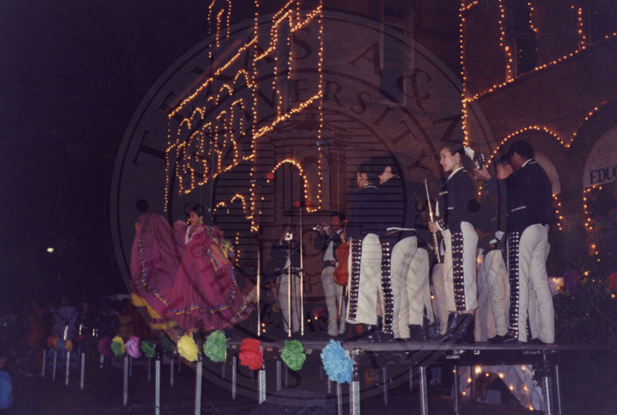 La Posada Pictures. Dancers in traditional Mexican dress and Mariachi band on stage |