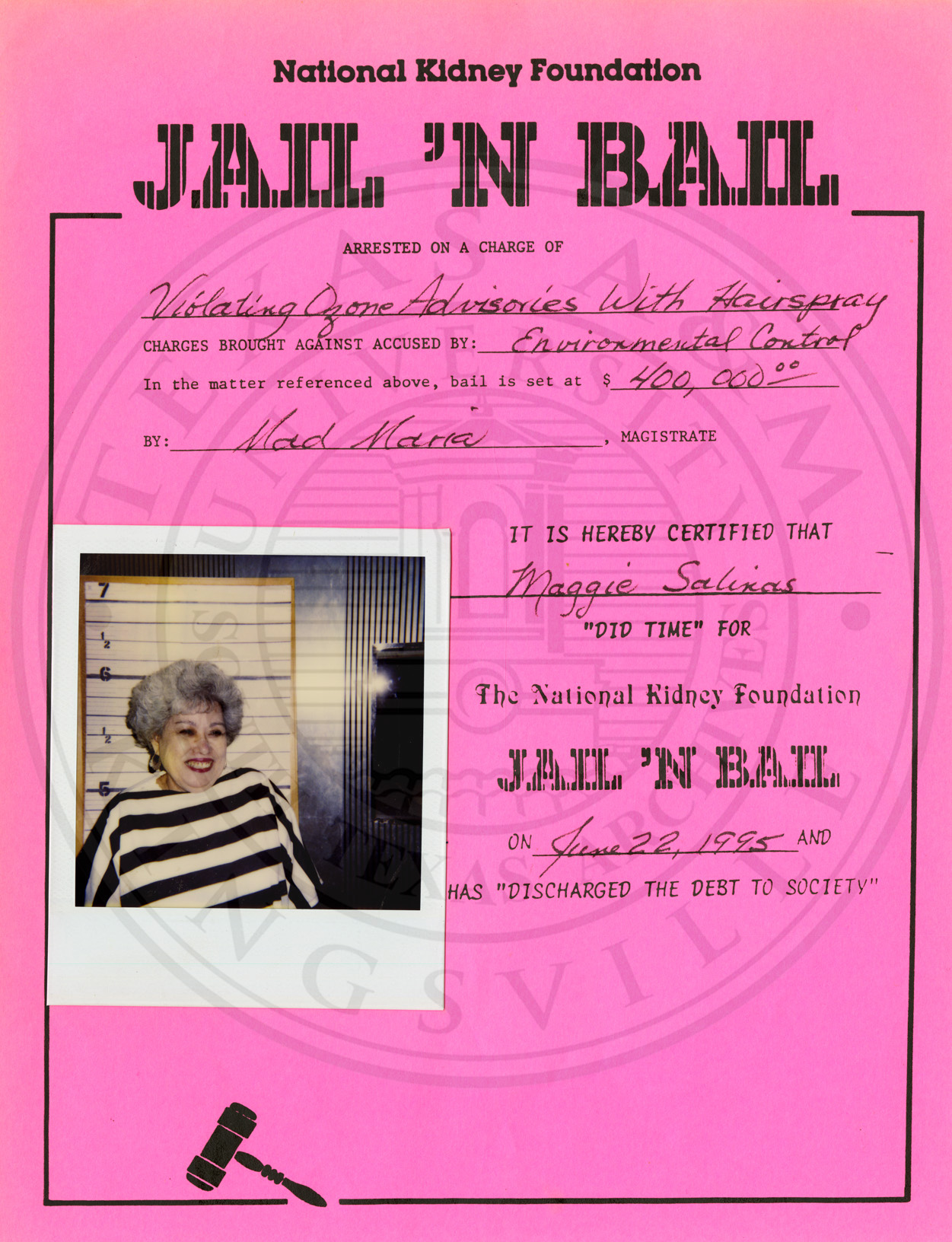 National Kidney Foundation Jail N' Bail mug shot of Maggie Salinas |
