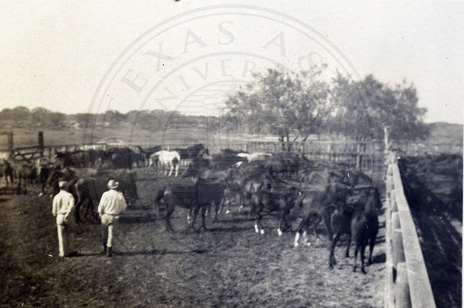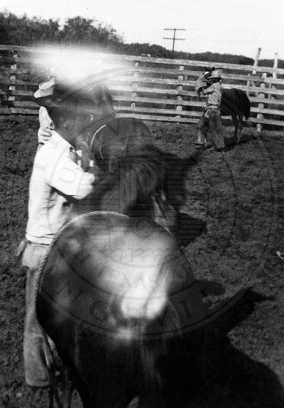 Cow horses. Ed Durham and ?, looking them over.