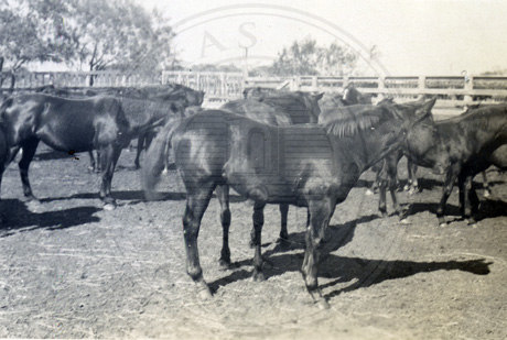 Bailemaker, the greatest quarter colt on the ranch. Less than 2 yrs old he already stands 15 hands. Sire: Old Sorrell; Dam: A Chicanna Mare.