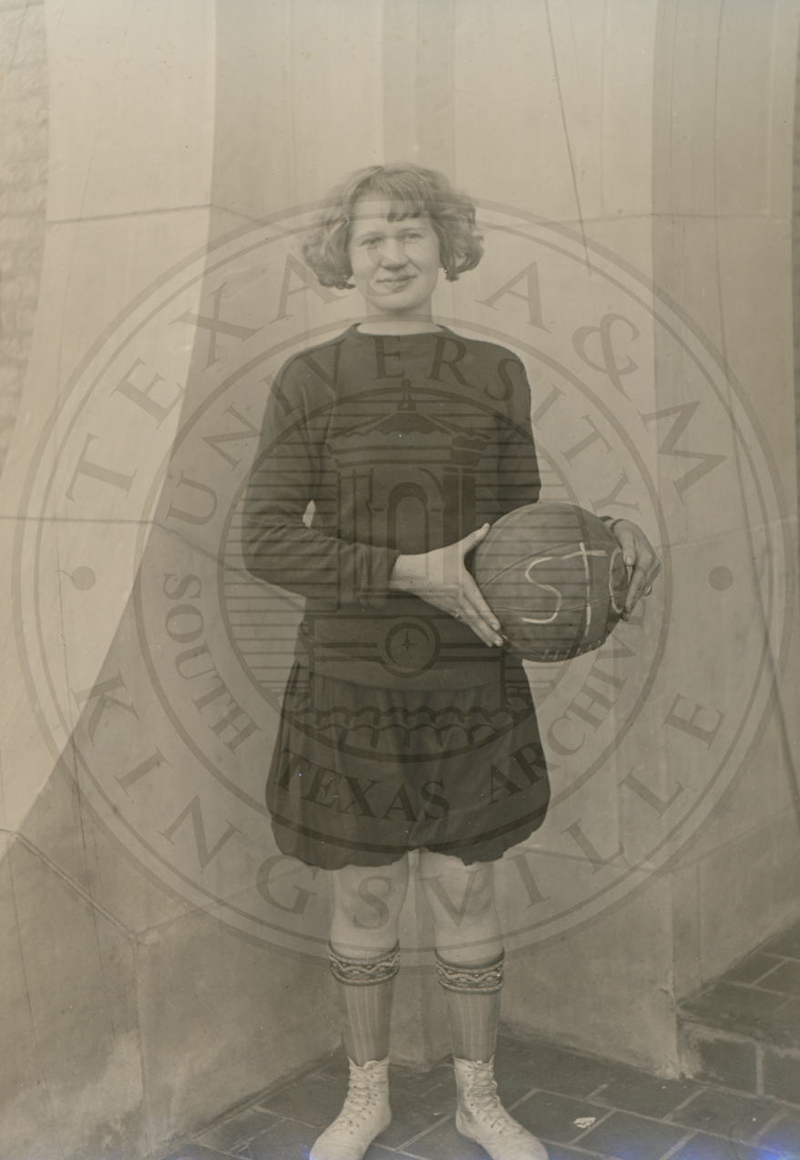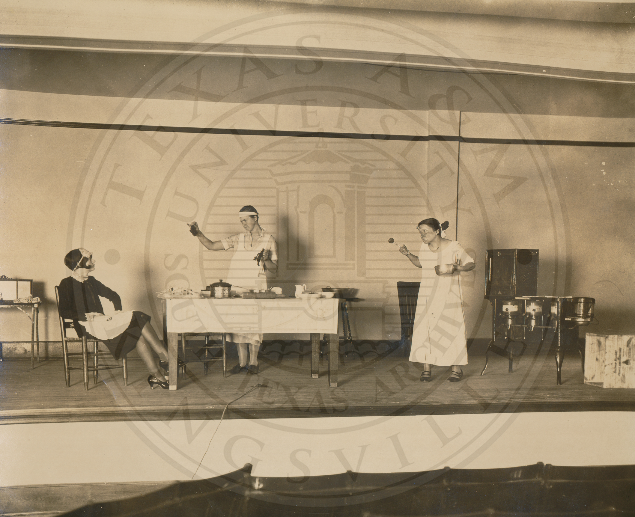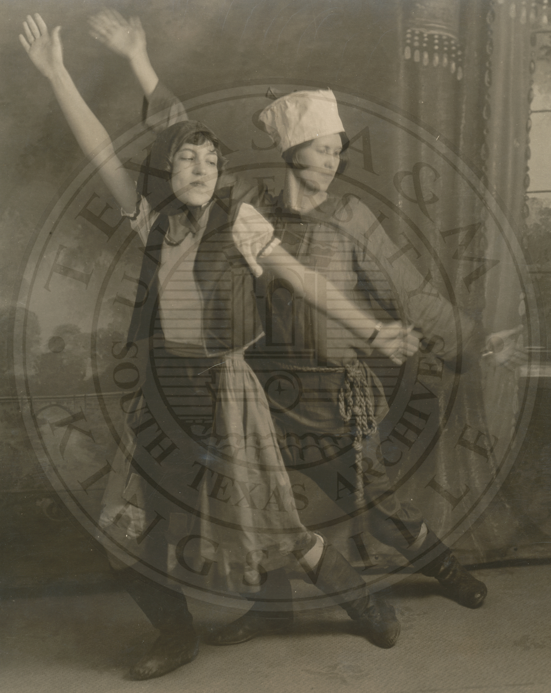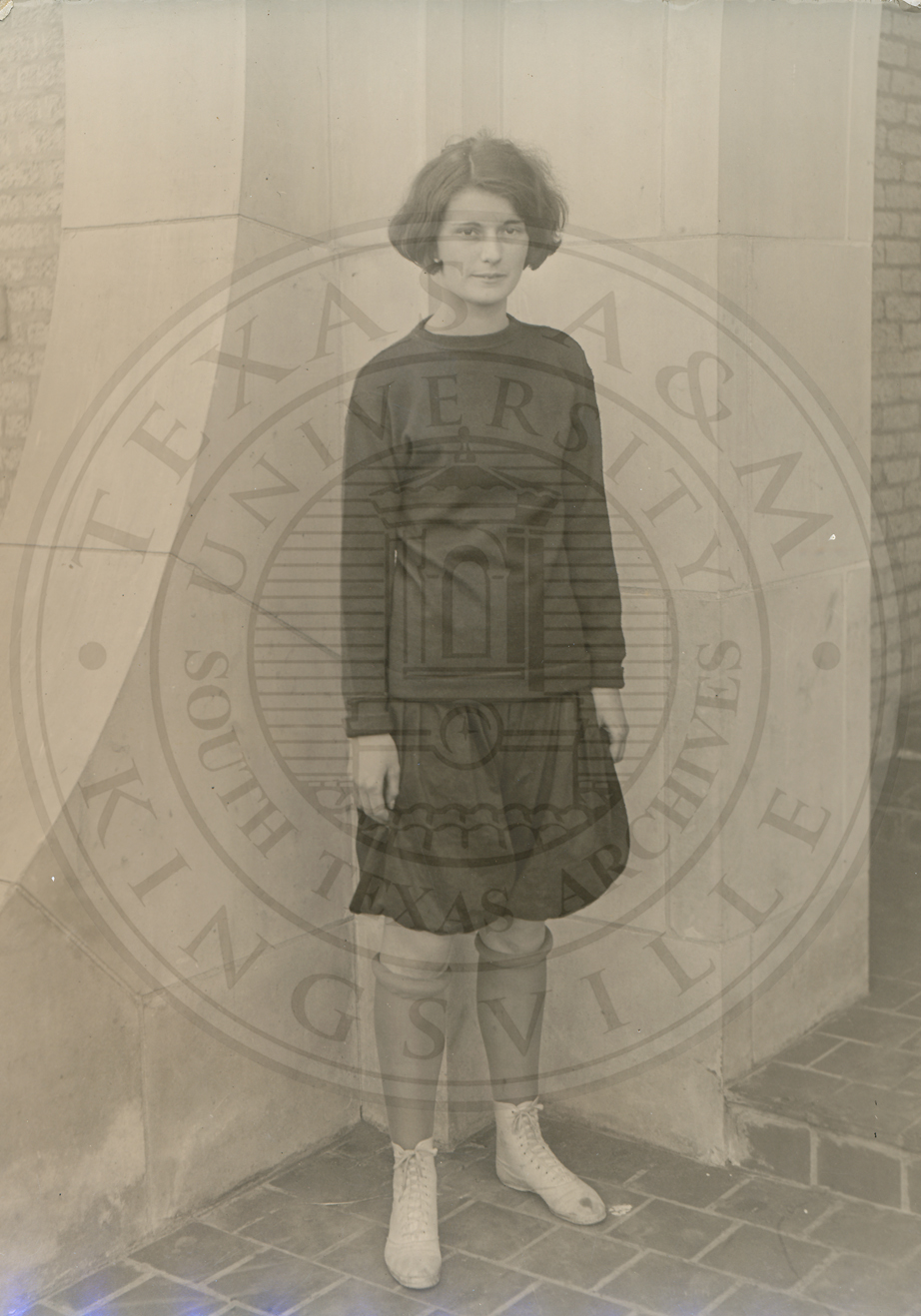 1927 view of South Texas State Teacher's College library bookshelves. |