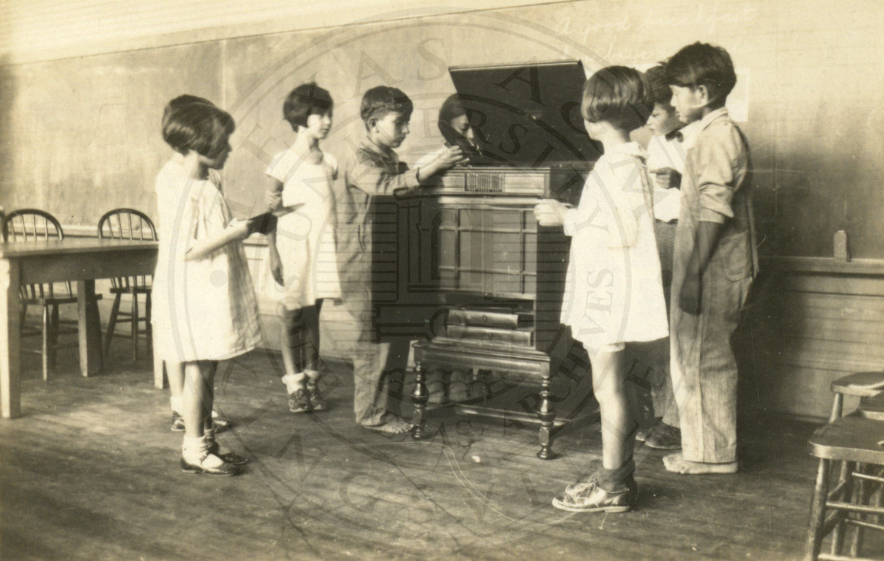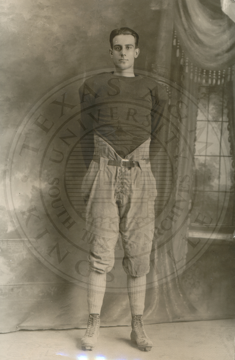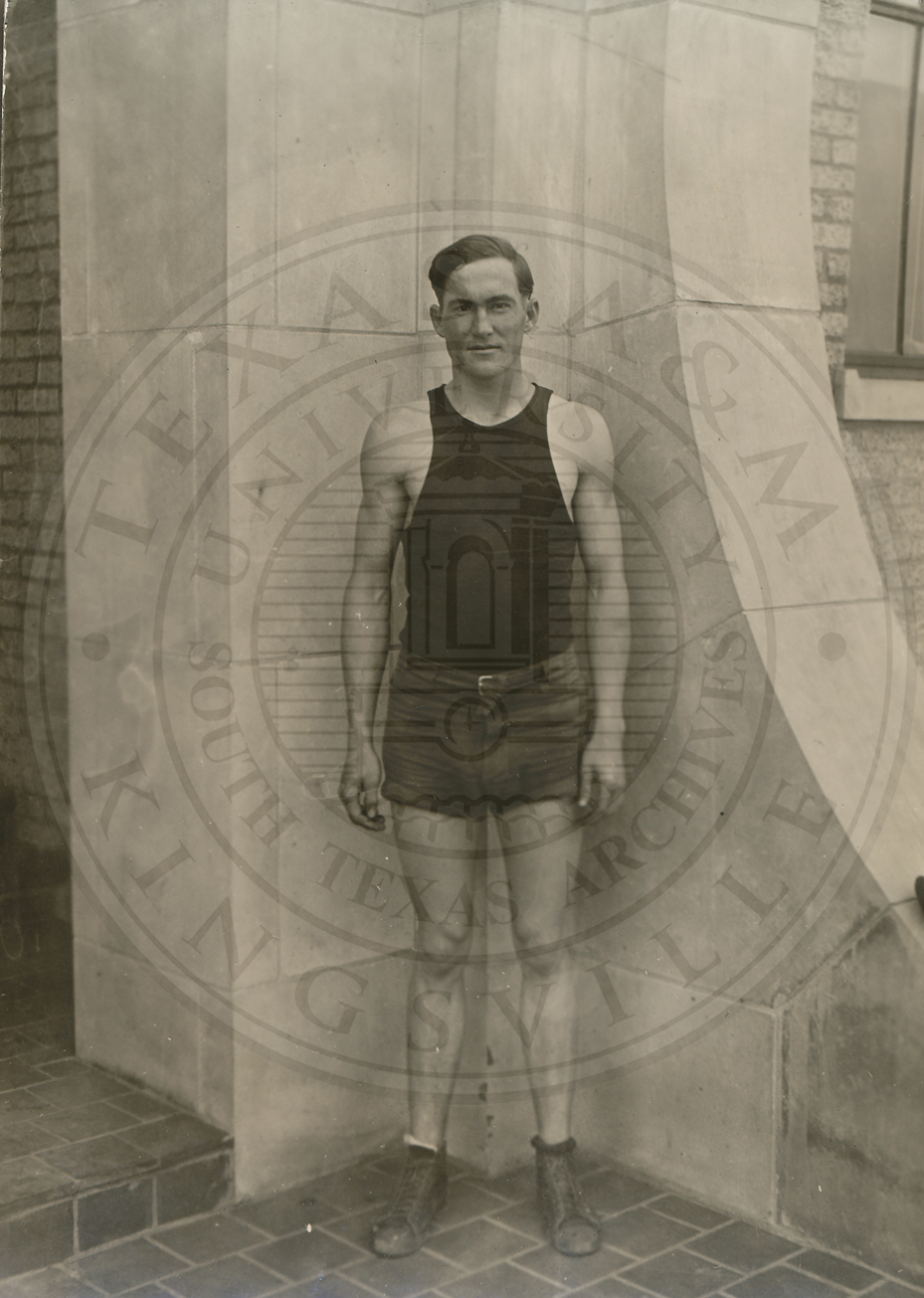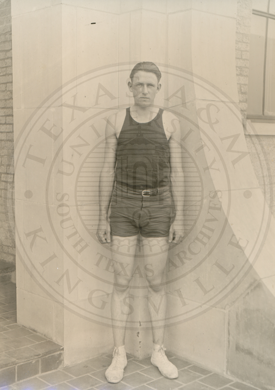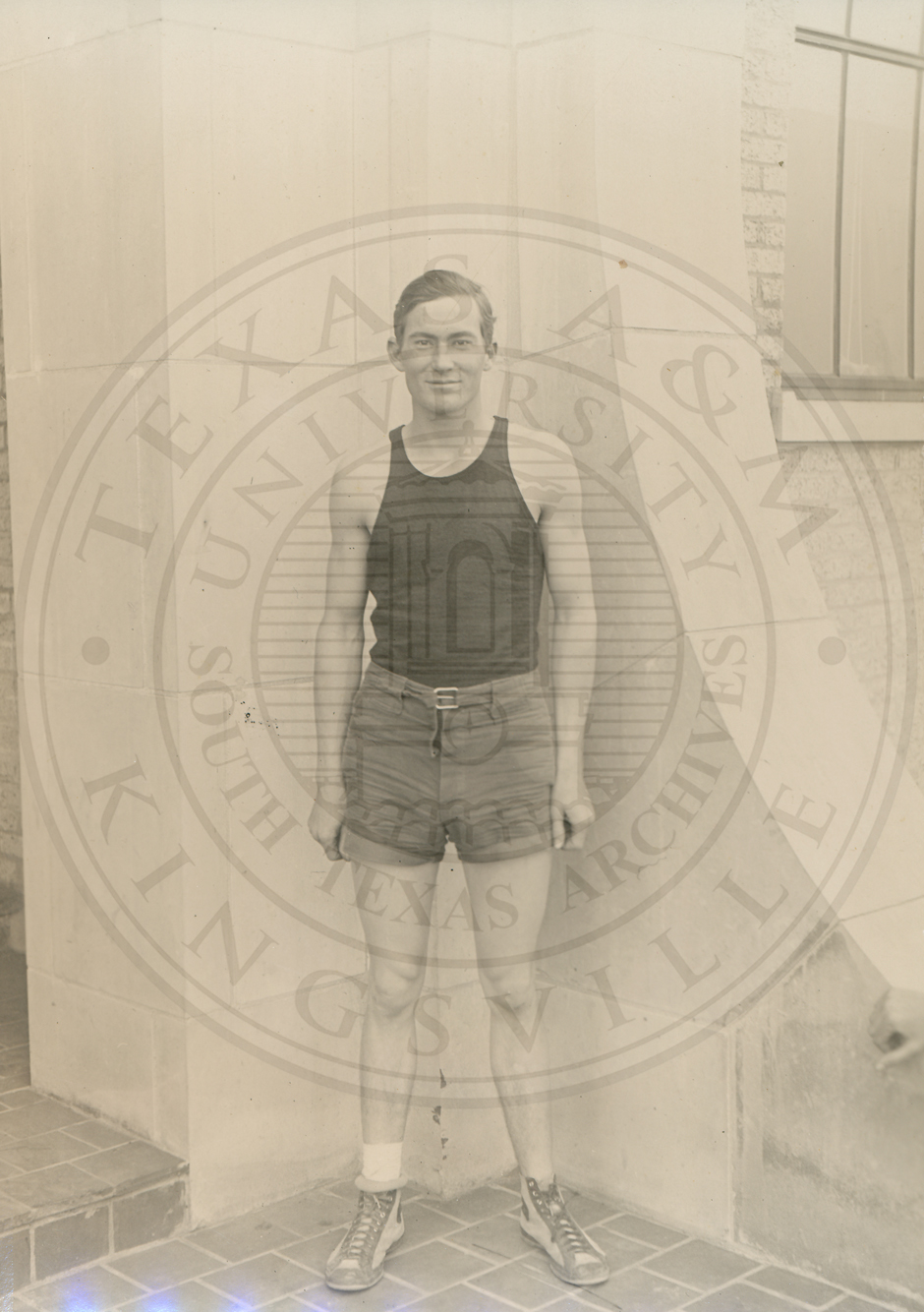 1927 view of South Texas State Teacher's College library bookshelves. |