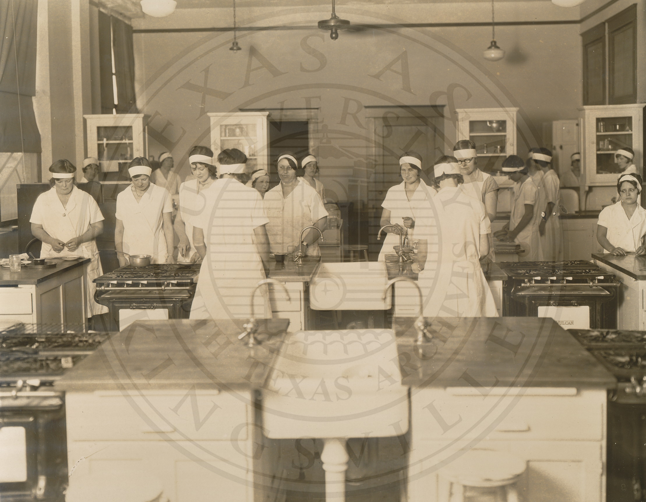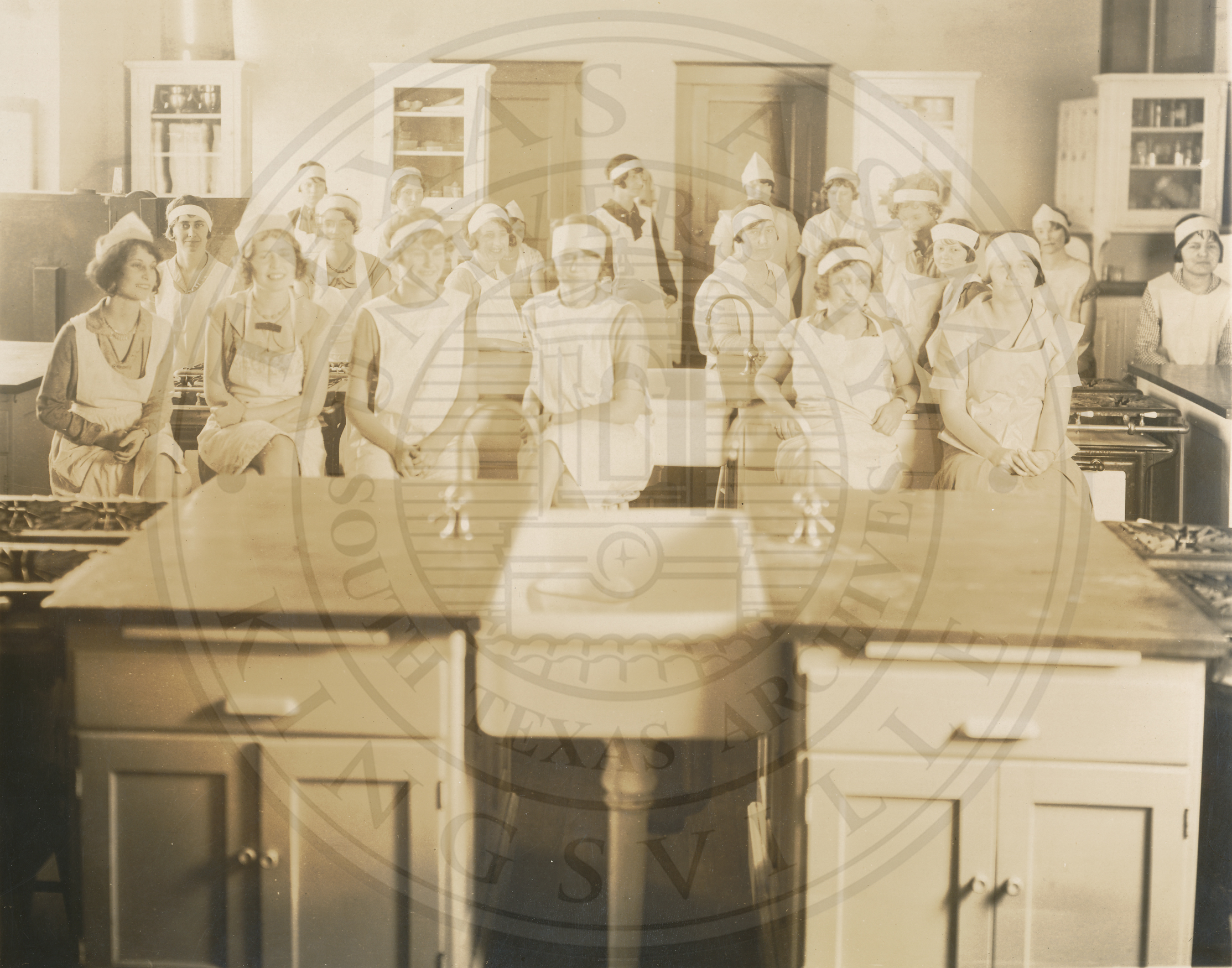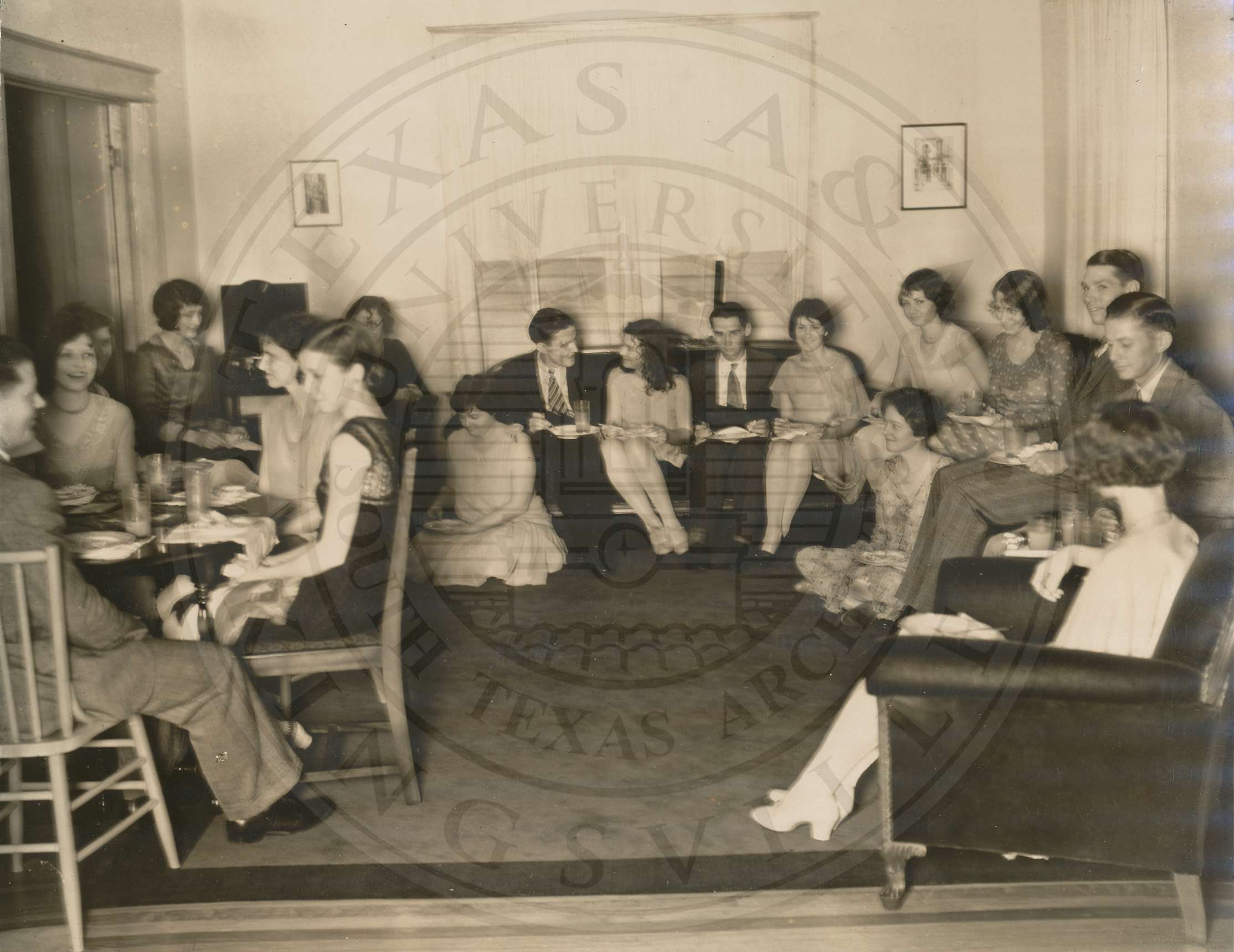 Dining room guests outside food lab classroom taken in 1929-30 school term. |