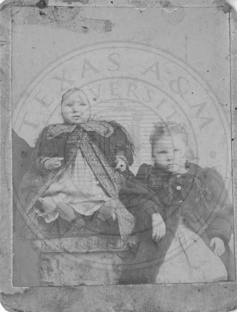 Photograph of an unidentified baby and an unidentified young girl, both wearing coats. |