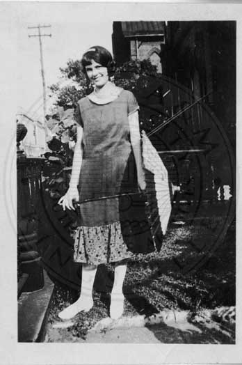 Photograph of Mabel Watson in a black dress. |