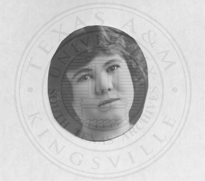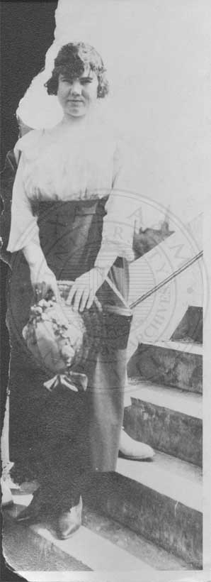 Photograph of Mabel Watson . Photograph is torn in half, other half missing. |