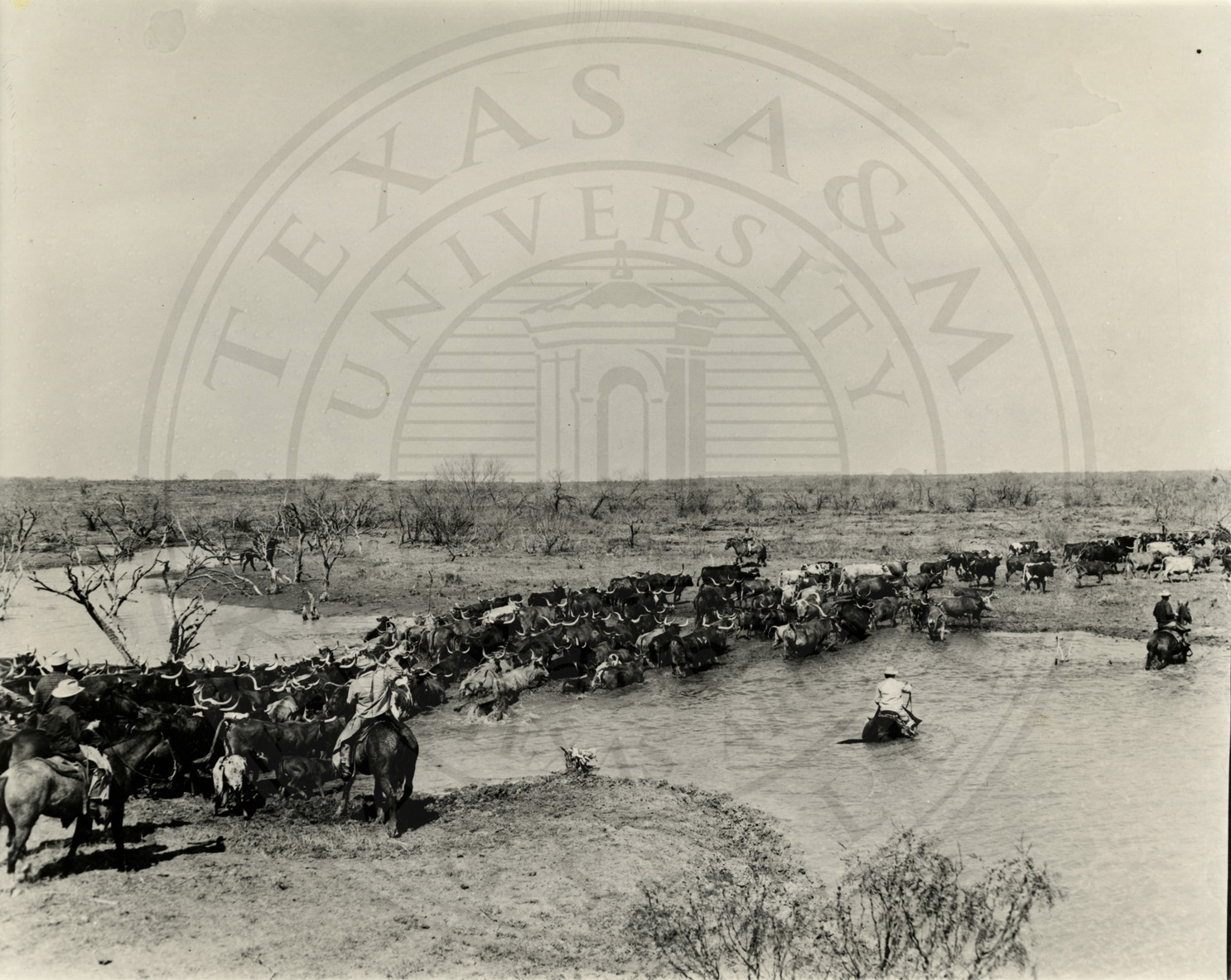 Cattle drive crossing a creek. |