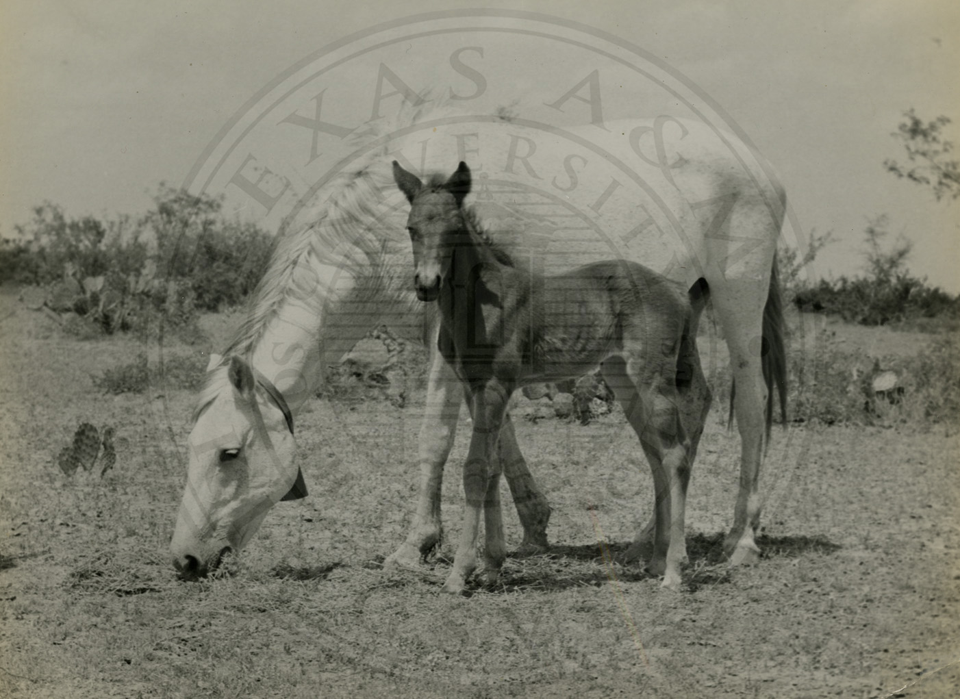White mare with her colt.