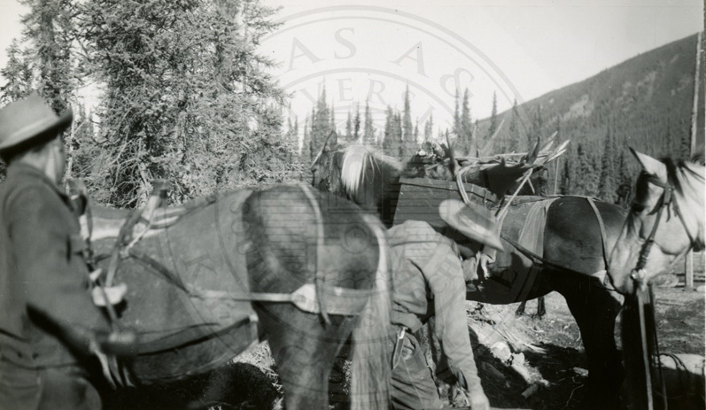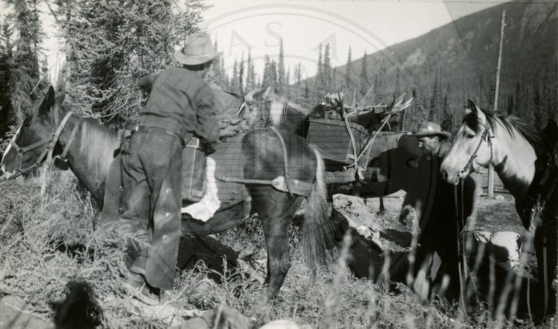 Men readying their packhorses |