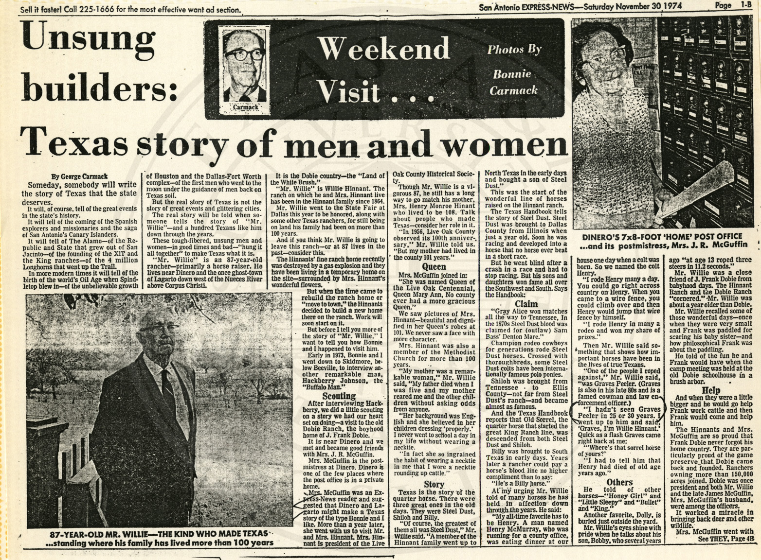 Newspaper clipping from San Antonio Express News - Saturday, November 30, 1974 |