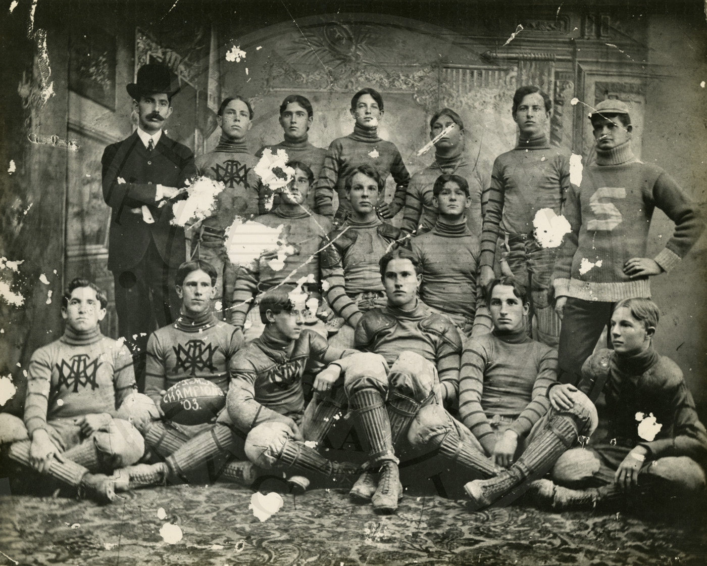 1903 West Texas Military Academy football team. The symbols on their shirts are WTMA. |
