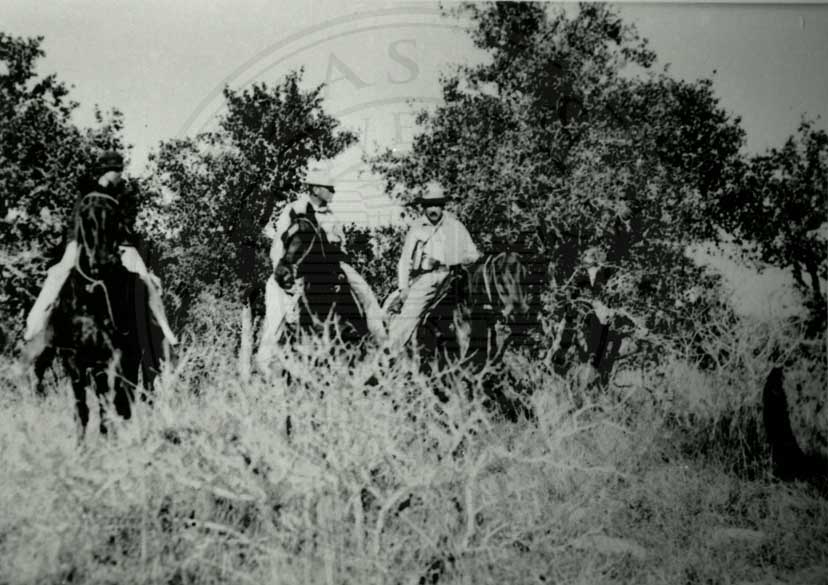 Unknown woman on horseback with Robert Jr. Kleberg, Jr., and Tom Armstrong on horseback |