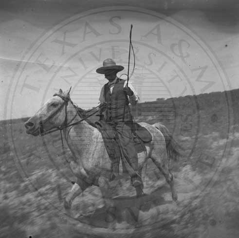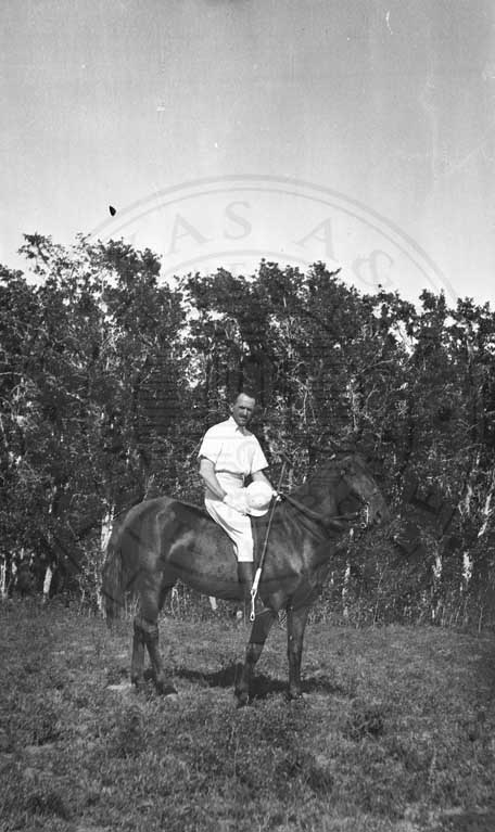 Man on horseback. Appears to be Tom Armstrong. |