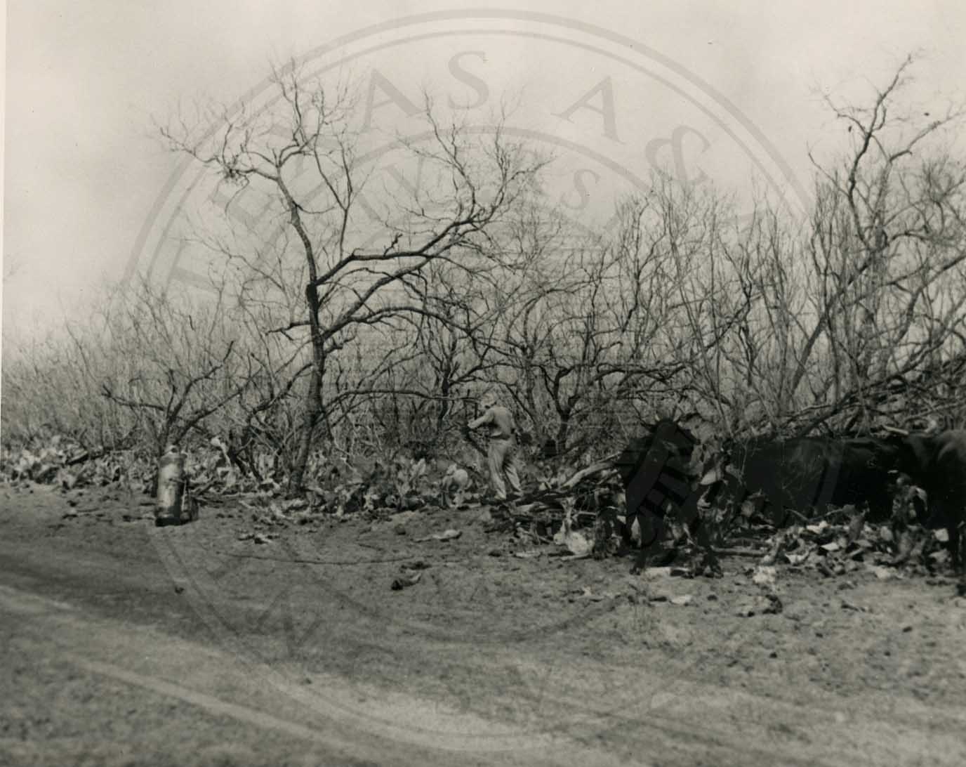 Cowboys burning thorns from prickly pears for cattle feed. Photo from King Ranch Archives