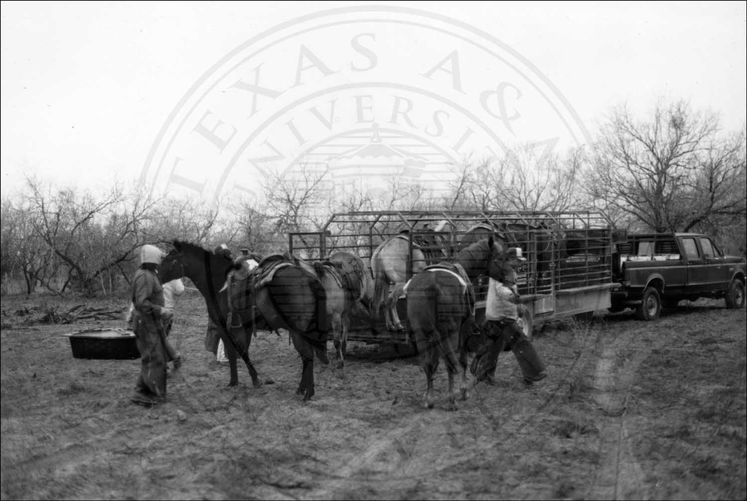 Modern vaqueros with horses in a trailer attached to a pickup. Photo by Joe S. Graham |