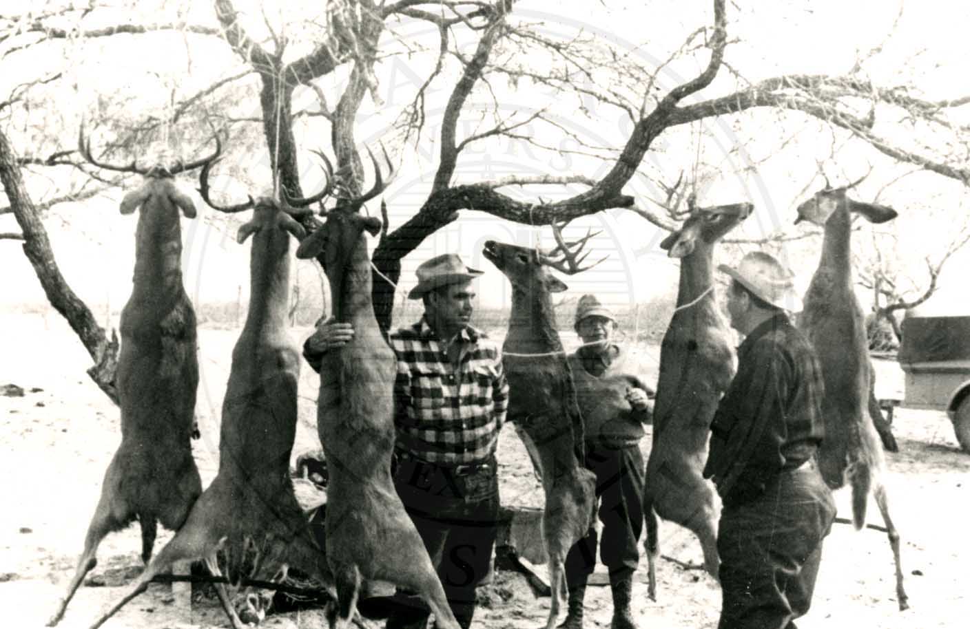Three hunters on the Alta Vista Ranch with six stags.Photo from W.W. Jones Family Archives