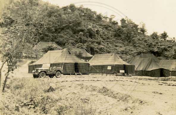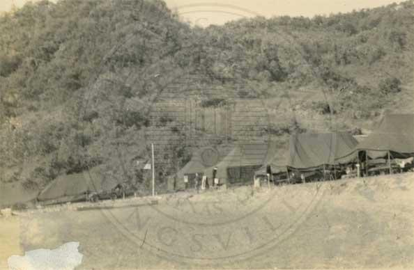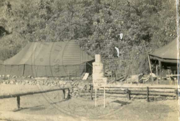 Soldiers beside a tent. |