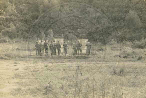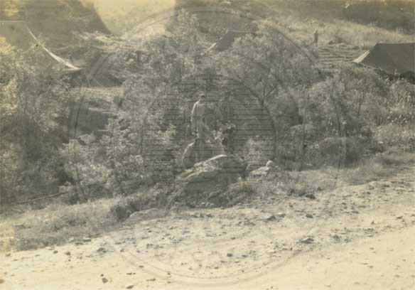 Soldiers on rocks. |