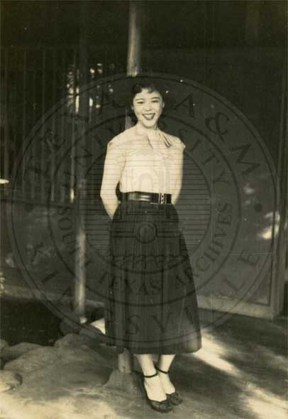 Korean girl in front of a house. |