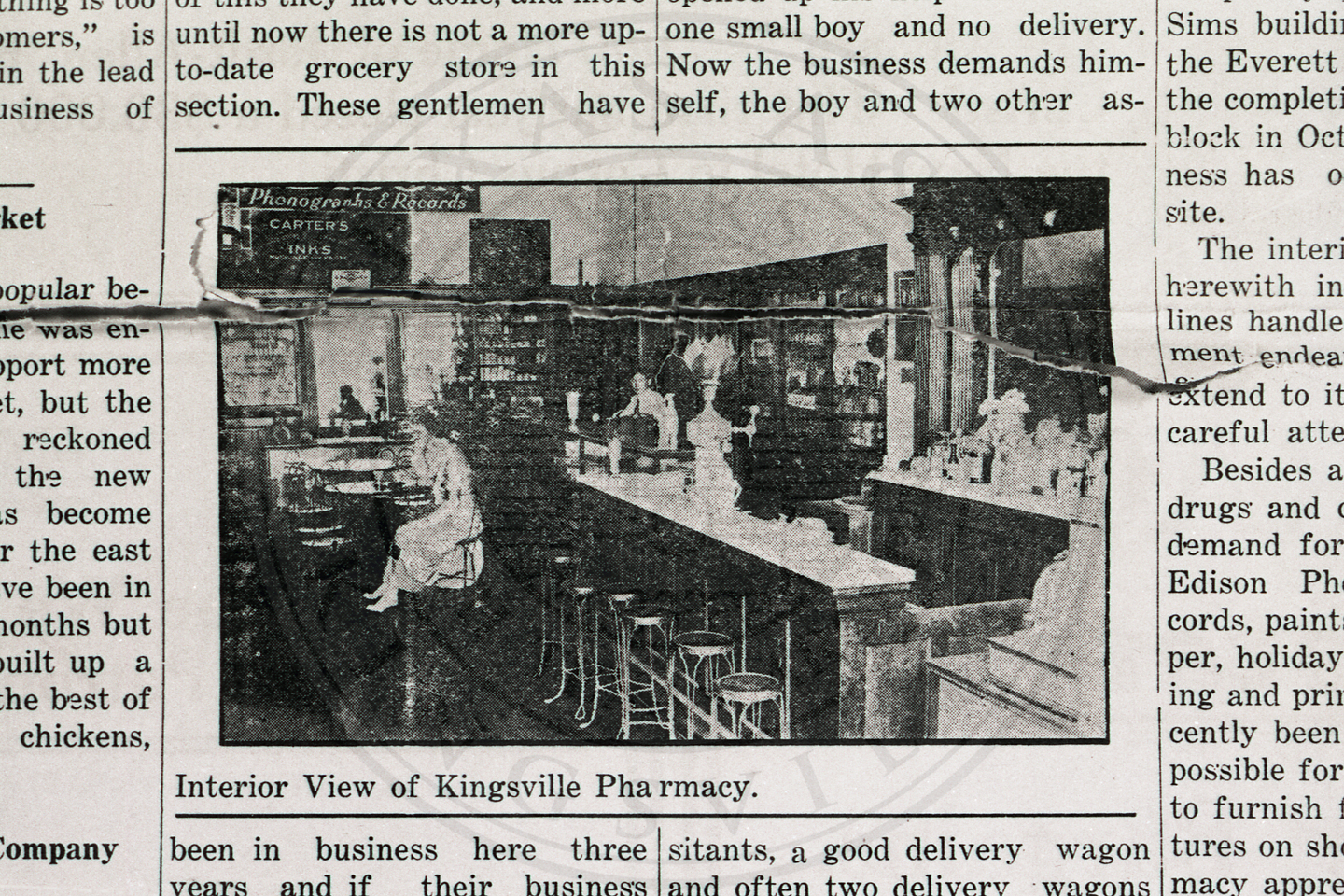 Negative of the Interior View of Kingsville Pharmacy |