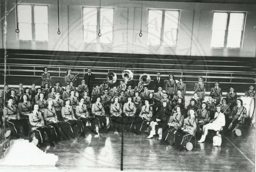 H. M. King High School band seated in gym. Ca 1940s. b/w – 8” x 10”