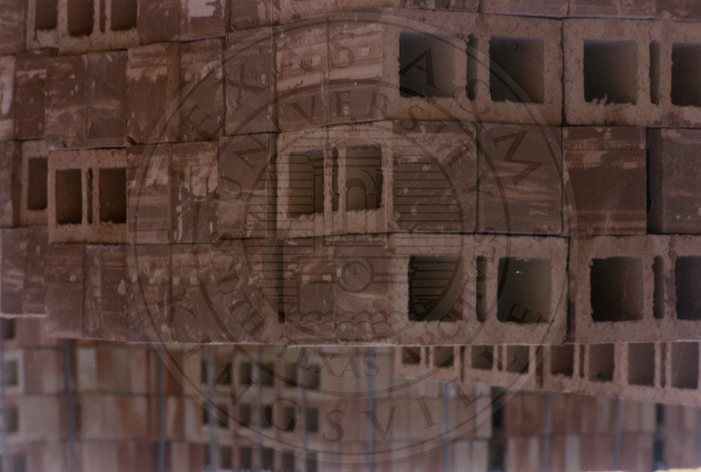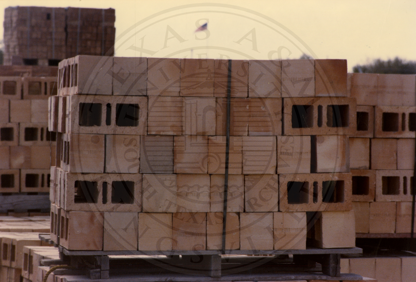 Close up view of pallet of cinder blocks from Camargo Brick