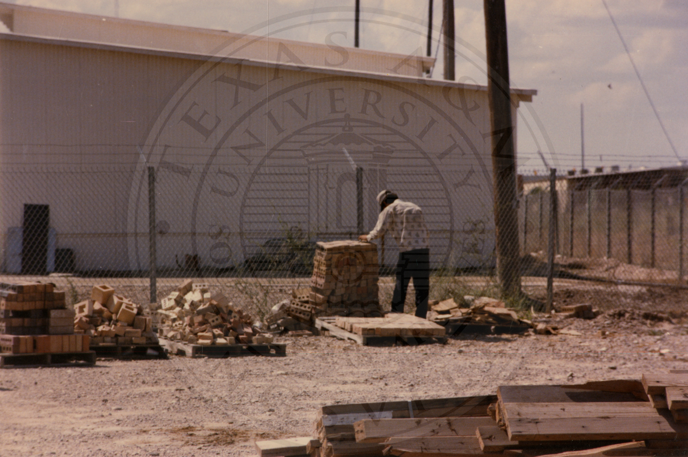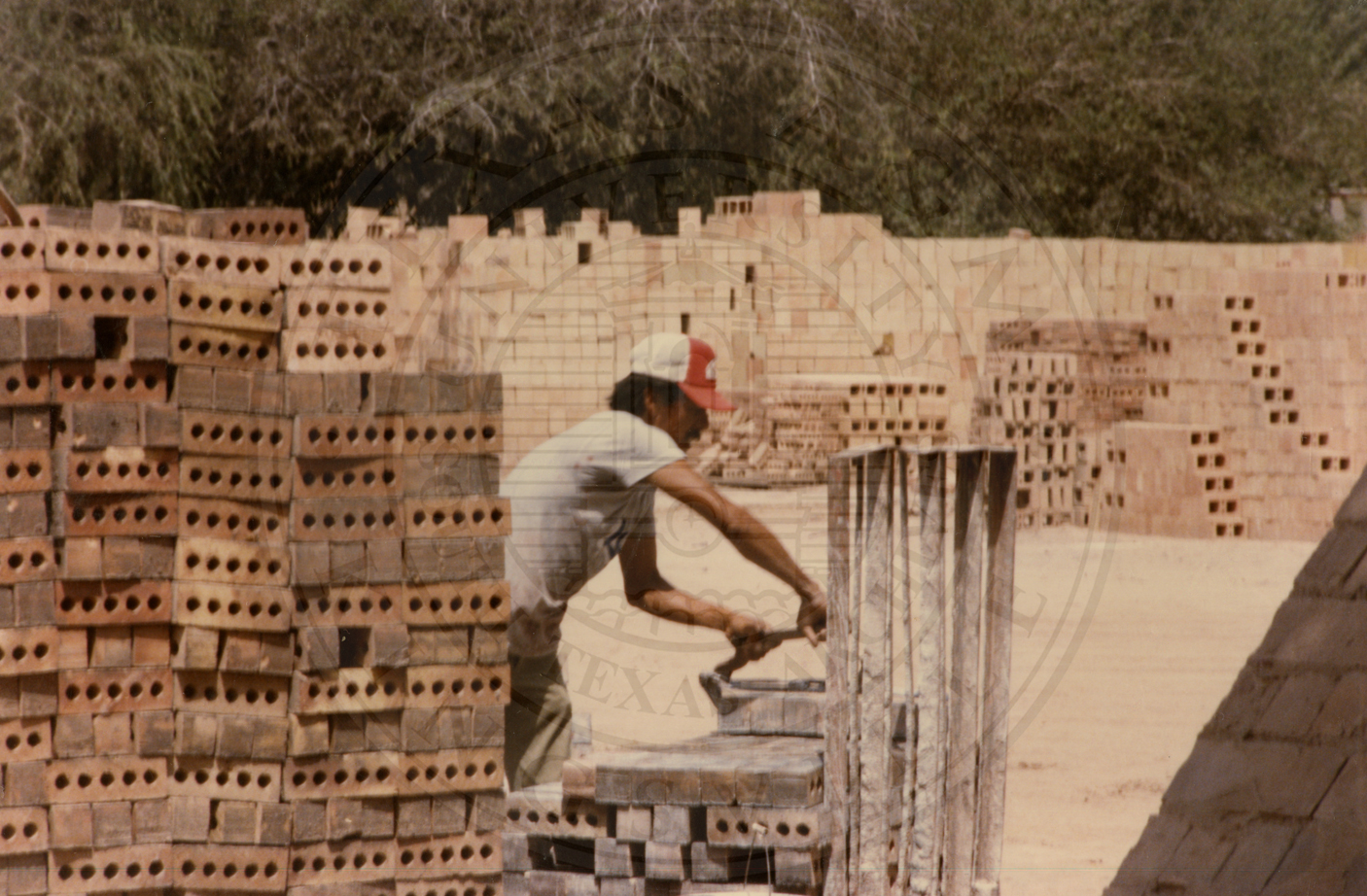 Unidentified man working on a pallet of bricks from Camargo Brick |