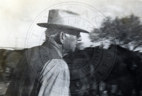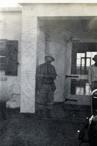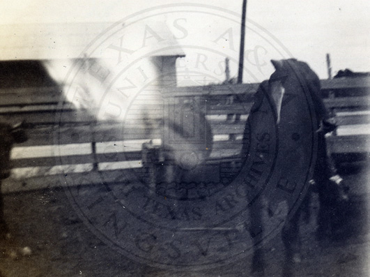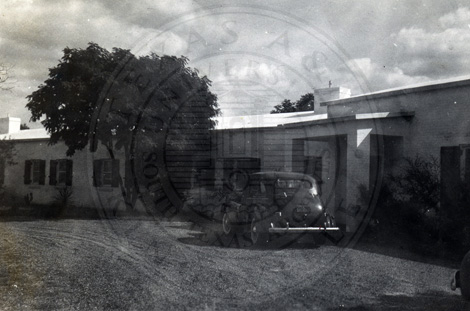 Note the swimming pool at Mr. Caesar’s place. Swimming pool. Note cowboy houses in background His home is on a hill overlooking the Ranch. It is 16 miles from here to the bay. All King Ranch too.