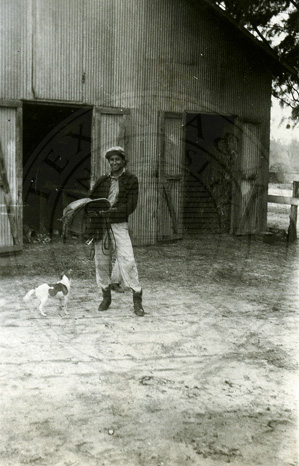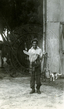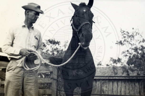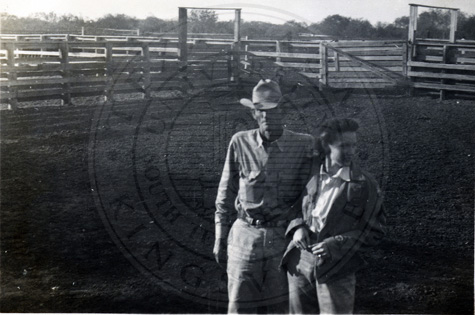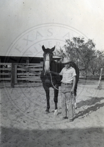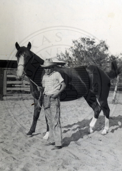 Nov. 1943, Hartline in chaps. King's Ranch. |
