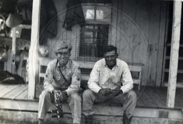 Seated at a line riders shack are Hartline and Ed Durham. |