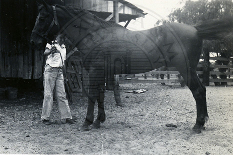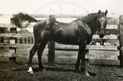 Band Play. Sire: band Time by High Time who sold for $90,000. Dam Fair Play who was by Barney Lucas by travelers. When these pictures were taken he was running with the head.