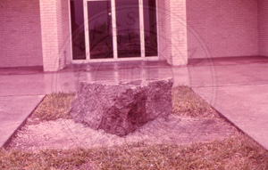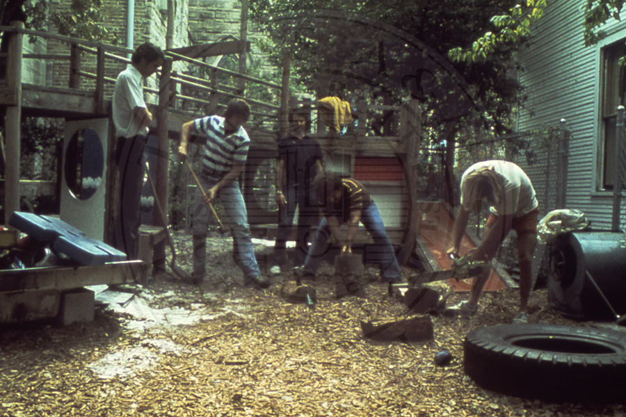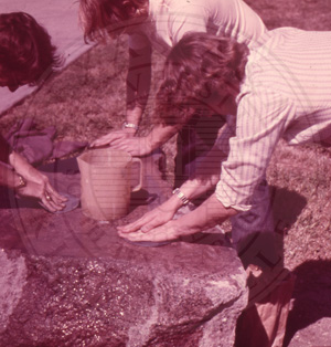Slide 38. Three unknown students working on the stone base |