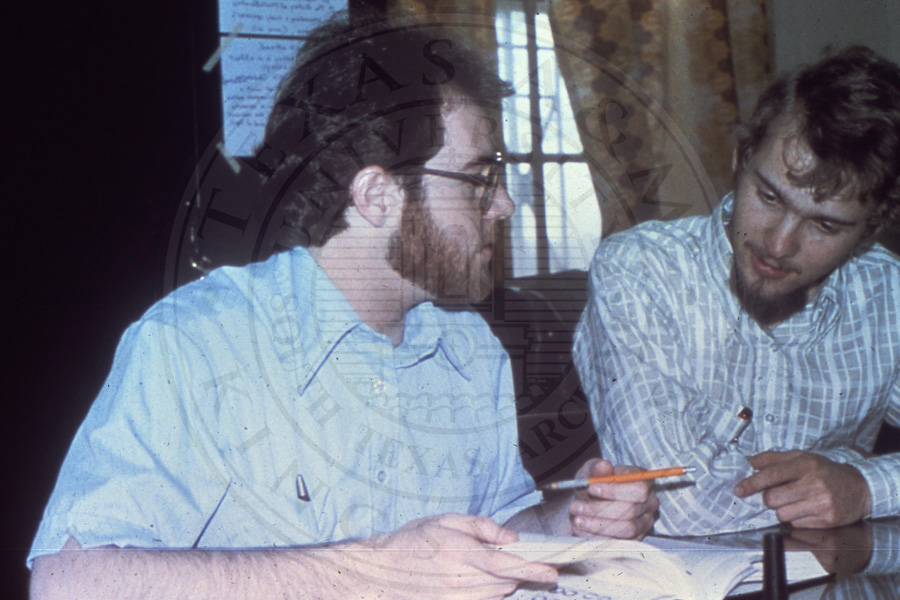 Slide 36. Two unknown students working on the stone base |