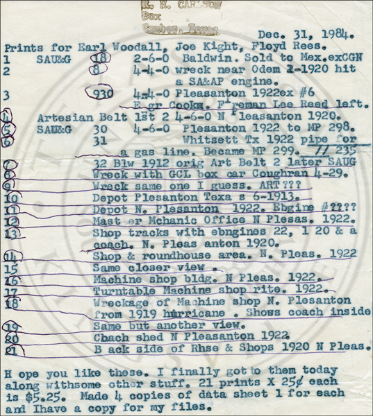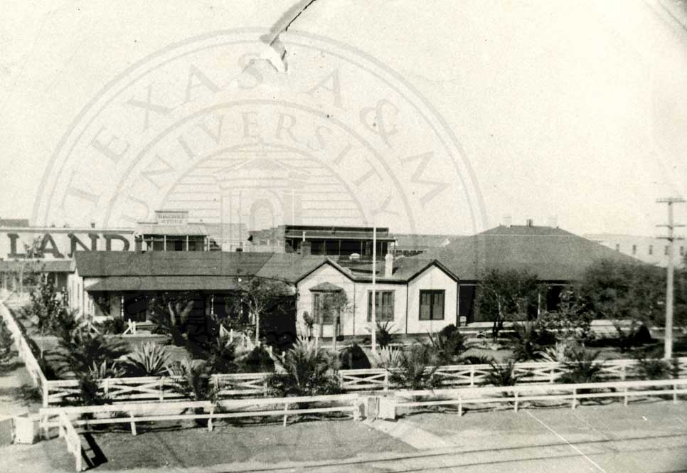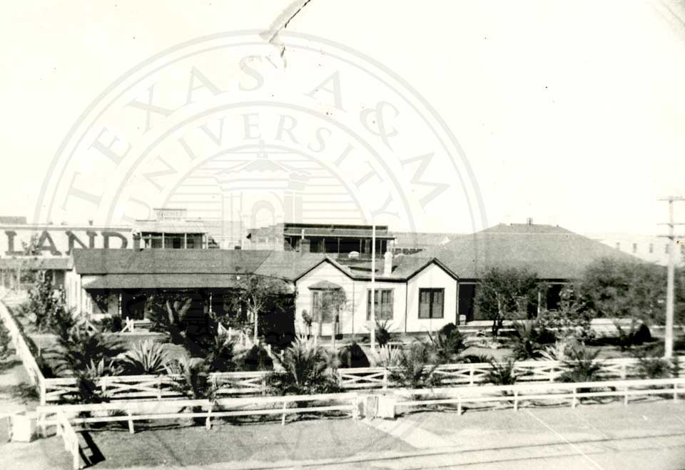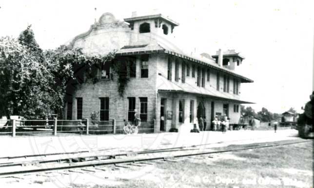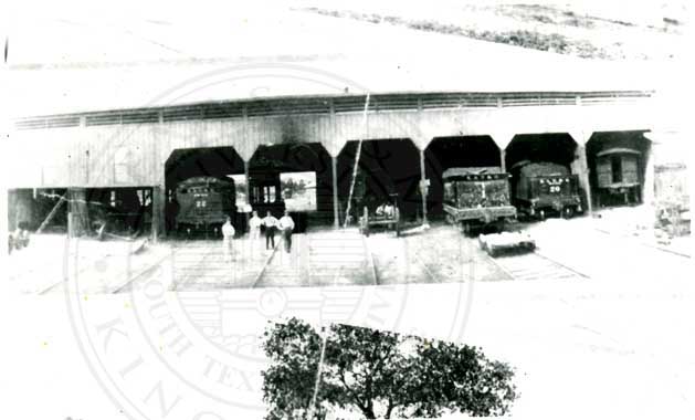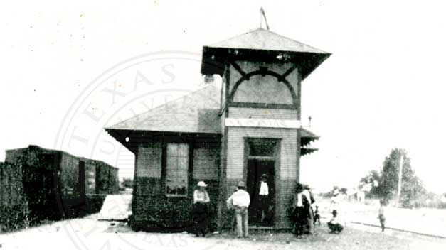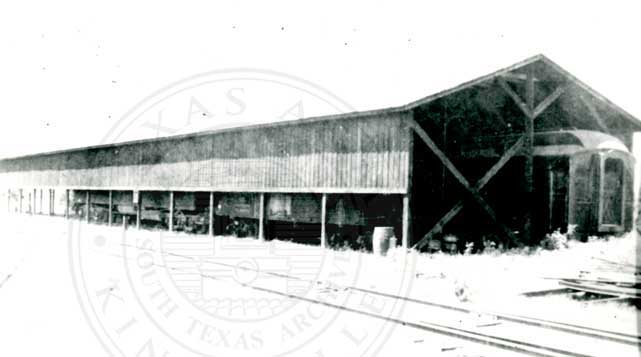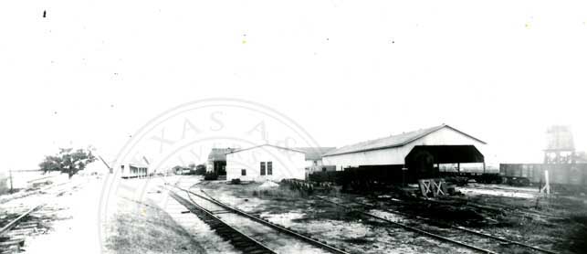 St. Louis, Mexico & Brownsville Railroad line office (pre 1910) fine in yards (1920). (13 photos) |