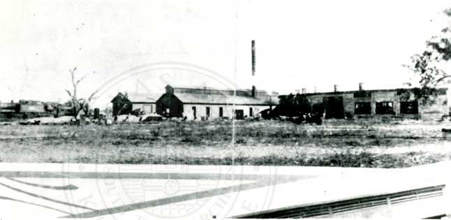 General View of Machine Shop - Smoke stack of Power House can be seen" |