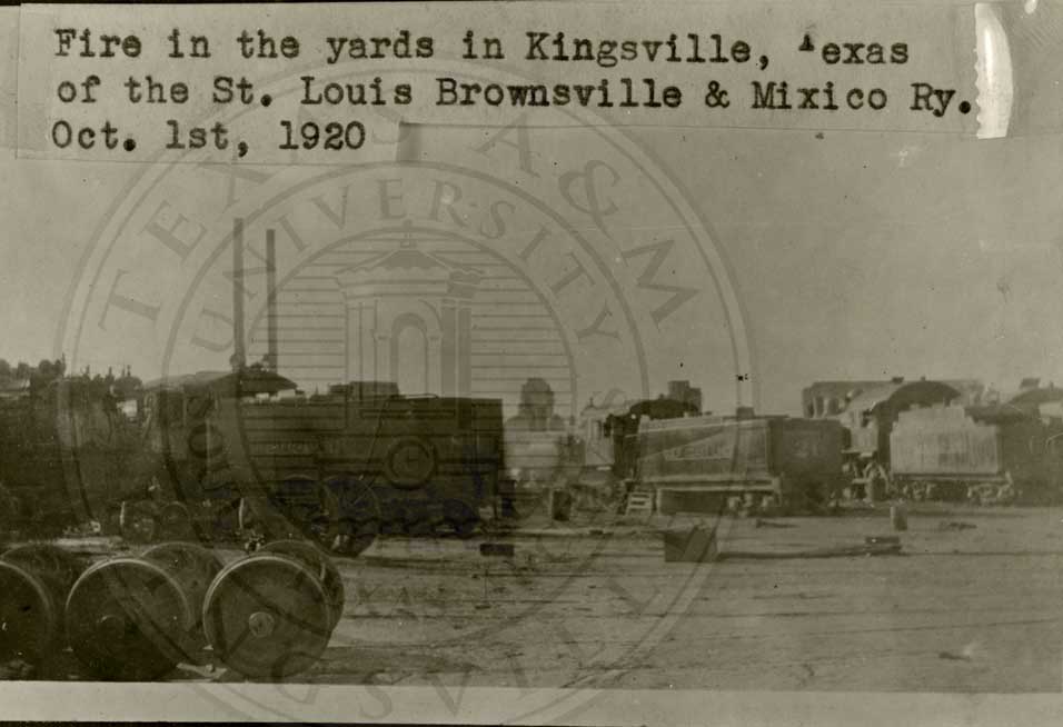 Fire in the yards in Kingsville, Texas of the St. Louis Brownsville and Mexico Railway. |