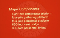 Sting Ray City Part I, Major components: eight pile compressor platform; four pile gathering platform; 4 pile personnel platform; 660 foot vent- bridge; 330 foot personnel bridge. |