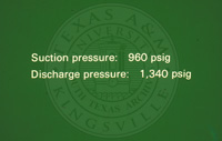 Sting Ray City Part II, Suction pressure 960 psig; Discharge pressure 1340psig. |
