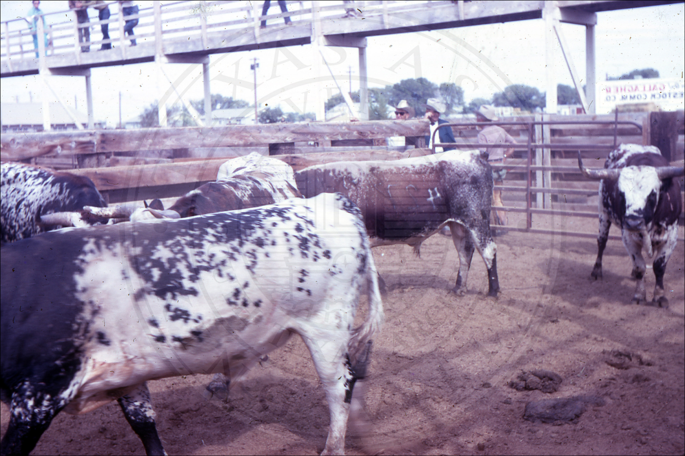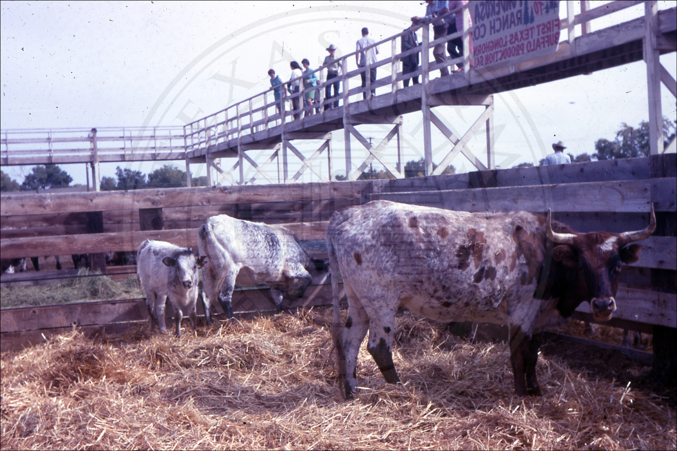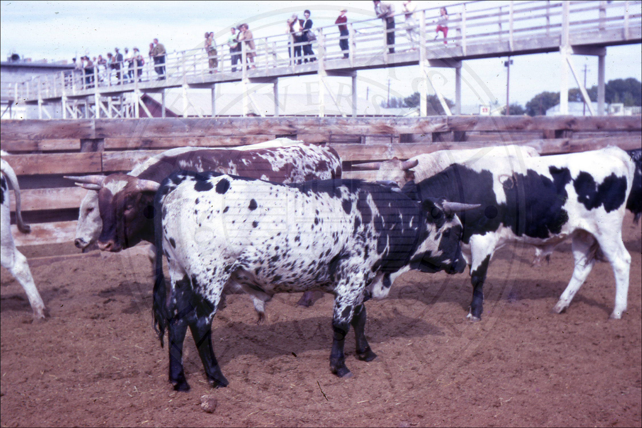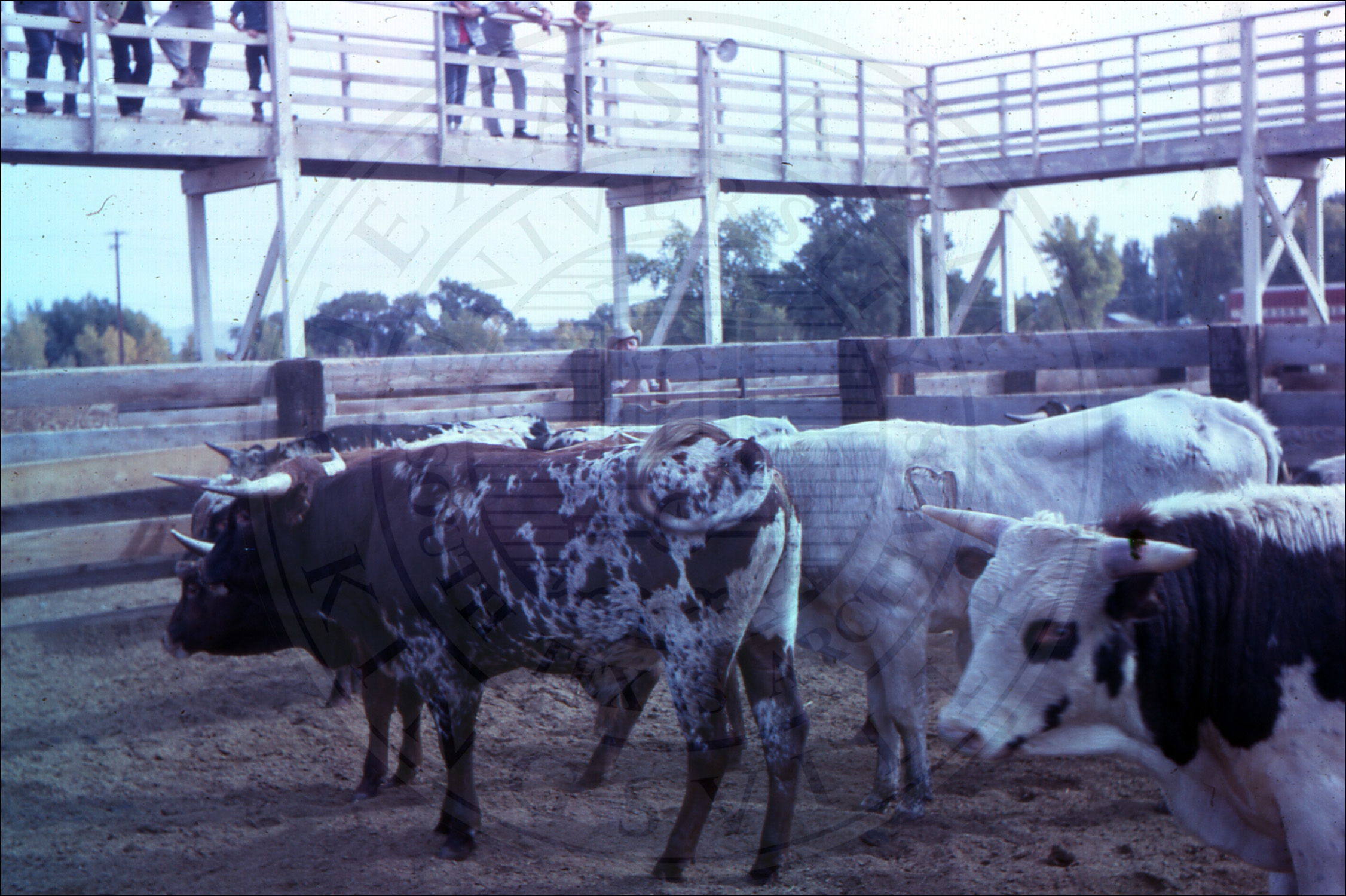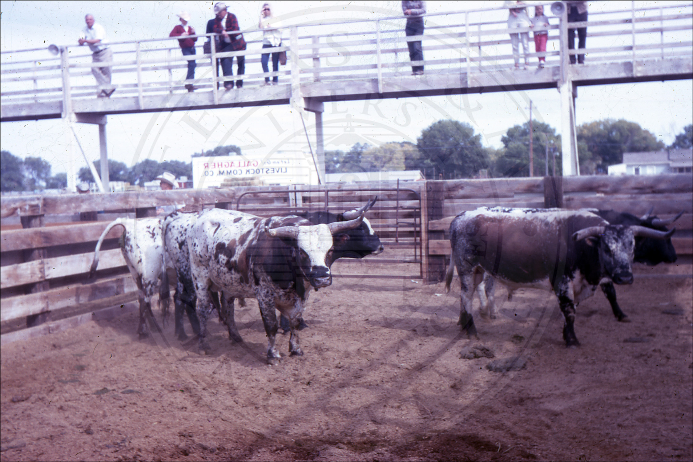 Longhorns inside different fences |