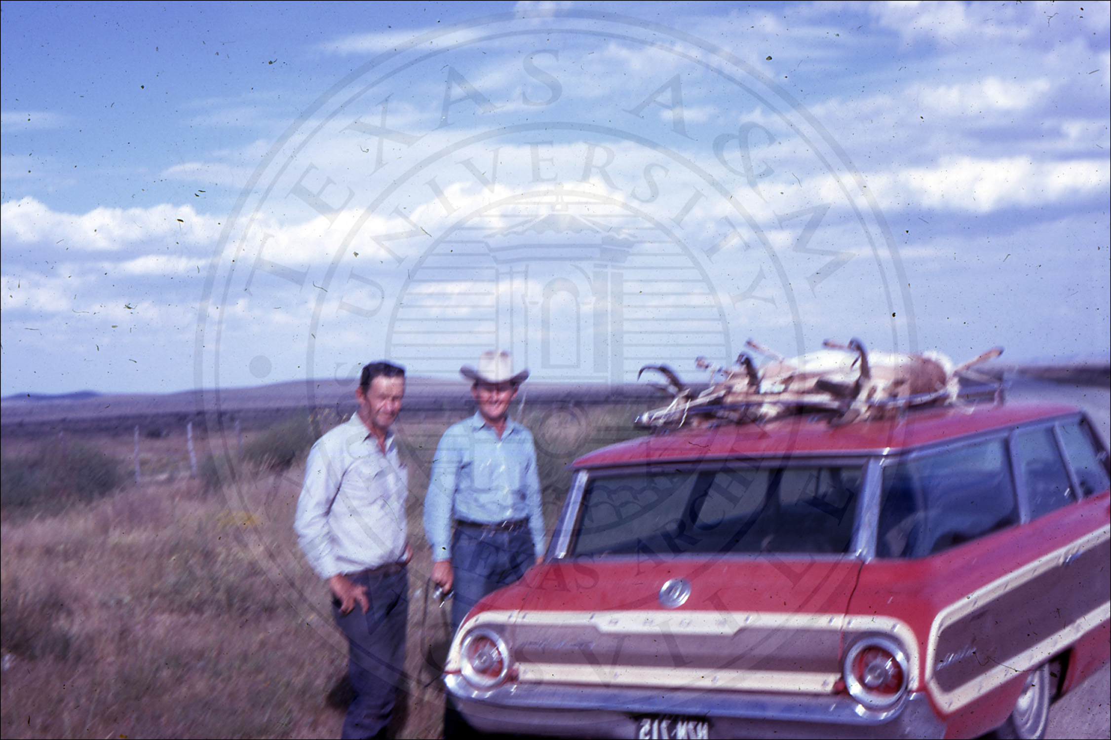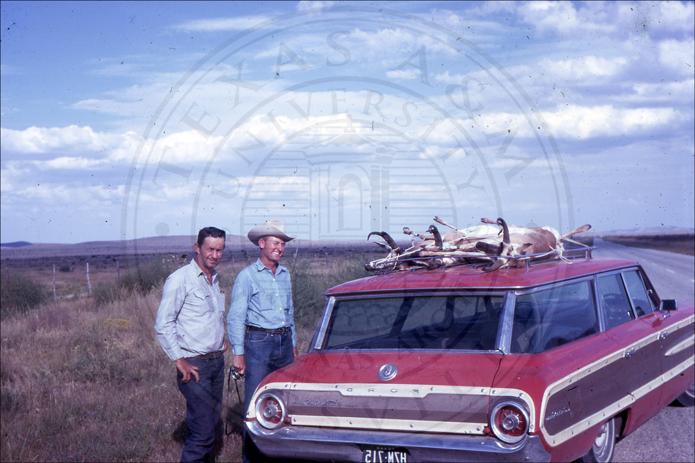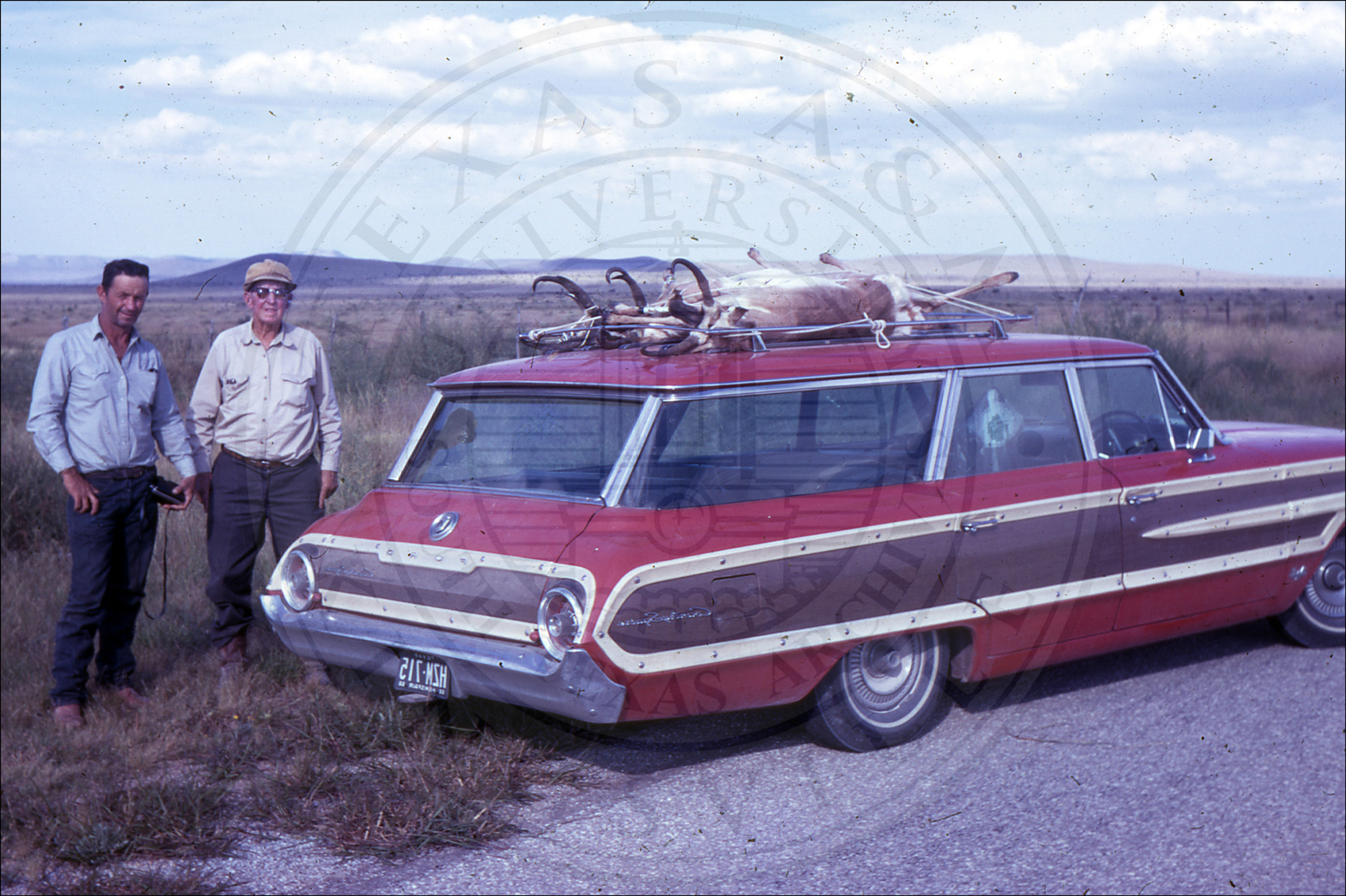 Unidentified men by car |