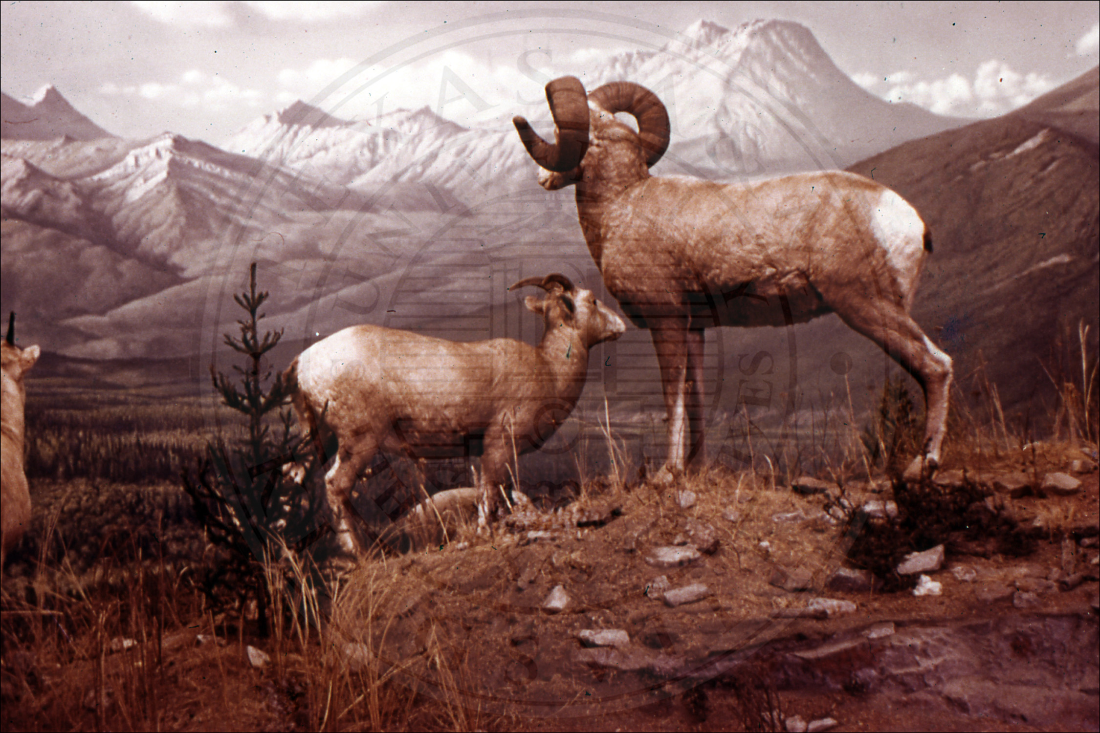 Bighorn sheep mounts in a museum setting |