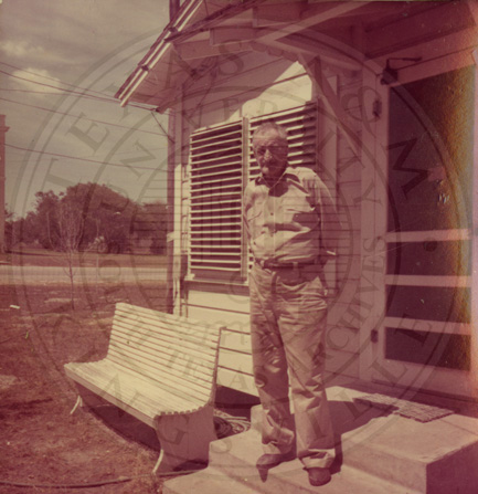 Unknown man in front of house.