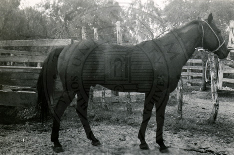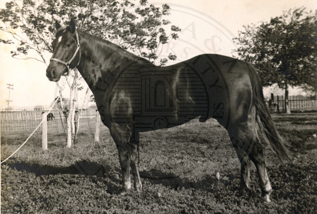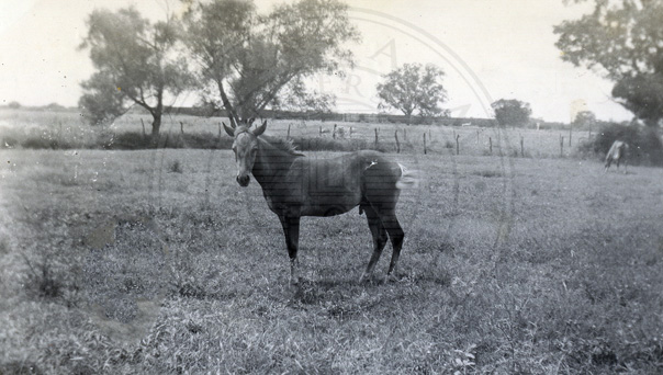 Caption on back, "Little Egypt, W.A. Northington, Sept. 1944 1944. Sire: Lucky Strike; Dam: Betty S. 2 years old" |