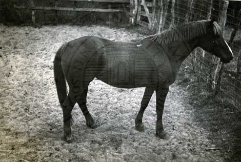 A chestnut with a flax mane & tail. 15.1 hands. 1300 lbs. Sept. 1944