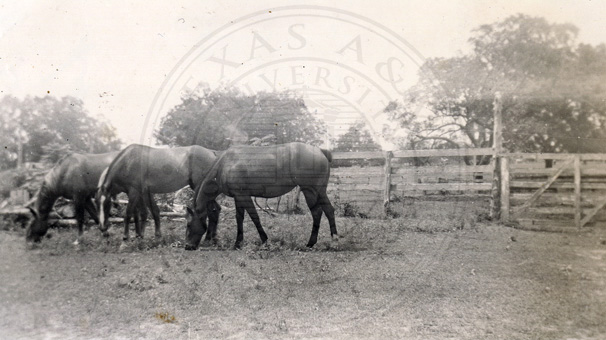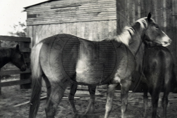 Caption on back, "W.A. Northington, Sept. 1944. Bay mare in foreground bred to L.S. Mare by Gotch out of a Jimmy grey mare."