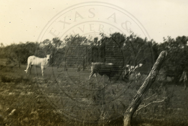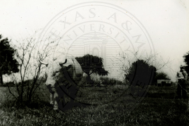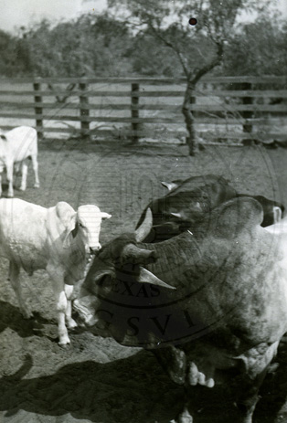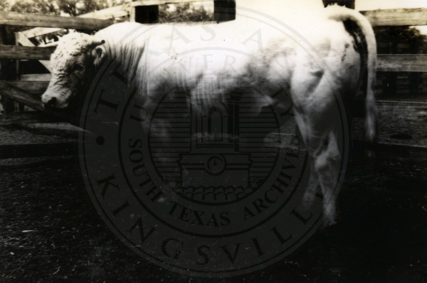 Charolais bull, a French bull, one of the few in this country. There is only one herd of this breed left in tact in France according to the latest reports smuggled from France. This is the best cross with Brahman. Mexico has some of this breed but won’t release them to the U.S. [$1,200 paid for this bull.]