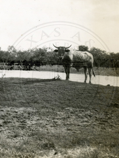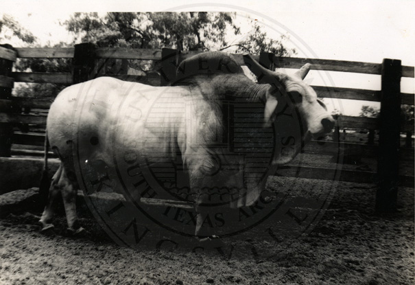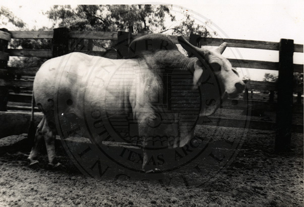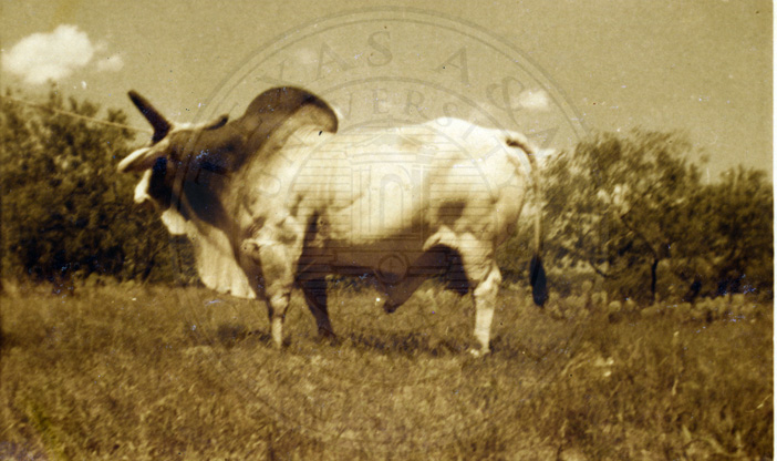 A double A. Brahman bull bought from Joe D. Hughes, Houston. This bull is now 10 years old and worth $1,000. (large article about “French Breed of Cattle is Becoming Popular in Valley [Charollais] on opposite page.